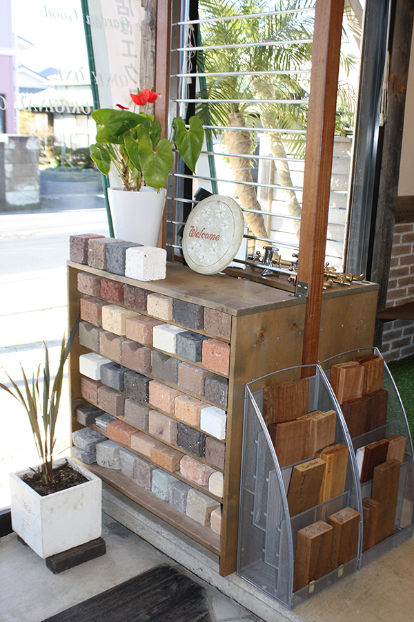石やレンガのサンプルはもちろん、ウッドのサンプルもたくさんあるので、是非手に取ってみてください。