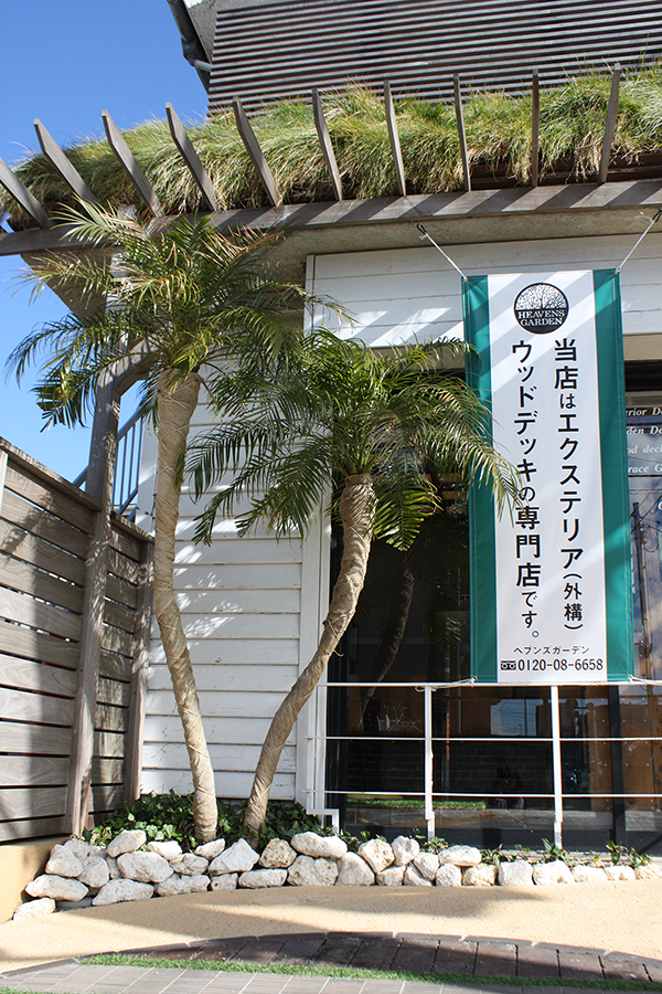 2本のフェニックスヤシはお店のシンボル。すくすく育っています。