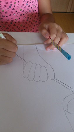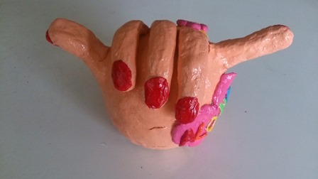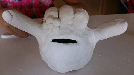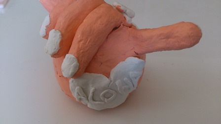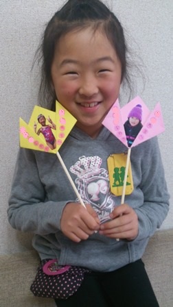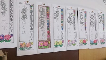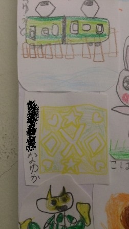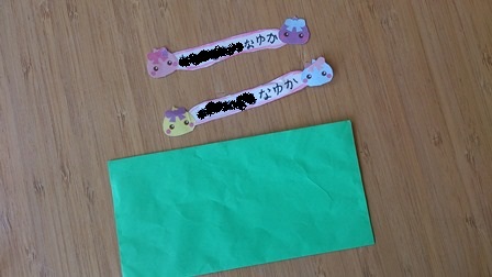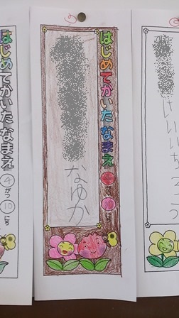 ほっぺちゃんの切り抜きを名前の横にのりで貼って・・・