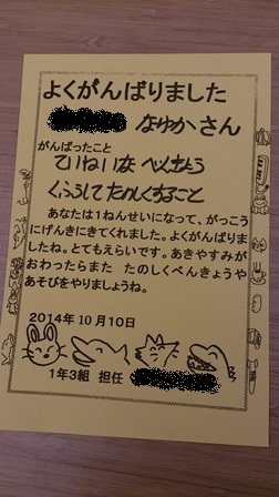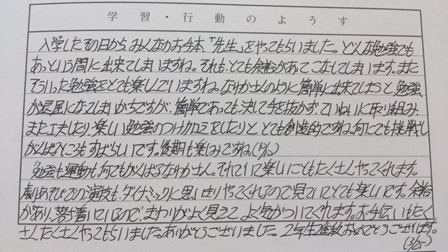 ・かん字をきれいにかくこと ←なゆなゆいわく、この時の字の方が今よりキレイ!だって(笑)