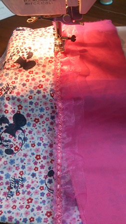 ・・・ということでデニムっぽいブルー系とピンク系の混ざったミニーの生地なりました♡