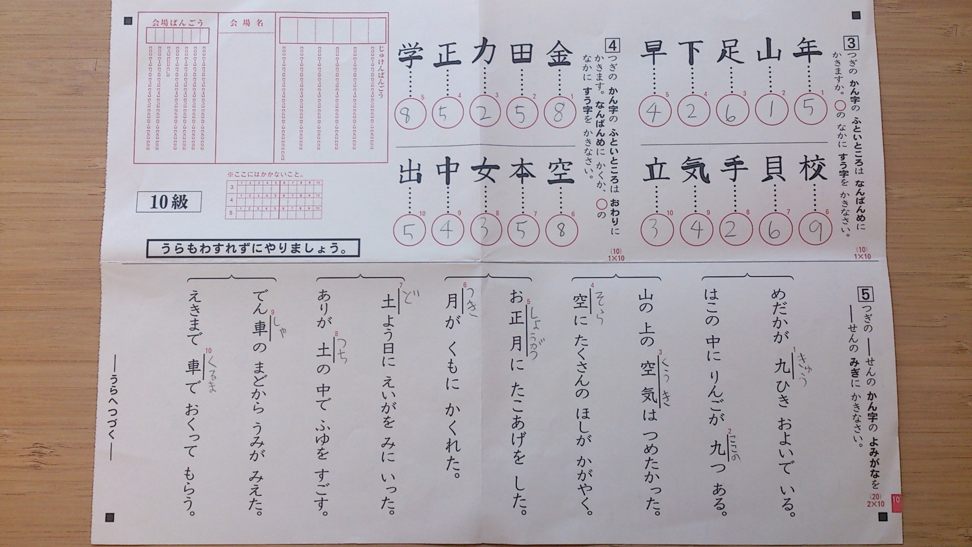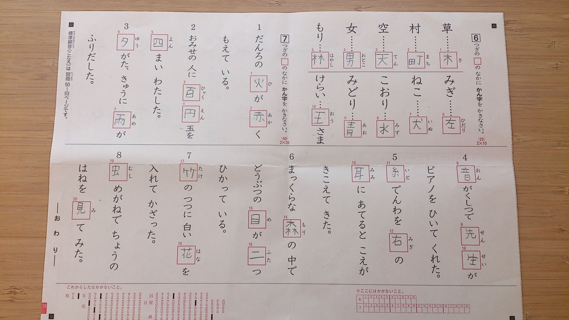 合格してたら9級(2年生の漢字)の問題集買ってあげるねぇ~♡