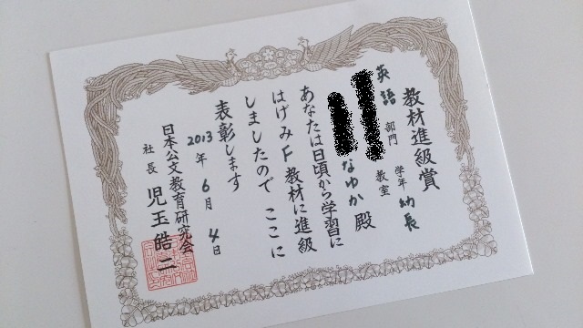 今年は国語と算数が3学年以上先を学習してるからってことで2教科表彰だから