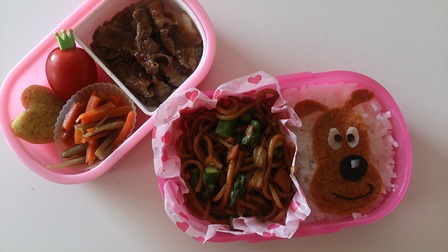 どうやら、焼きそばにおにぎりが入ってるのがお気に入りみたい(笑)
