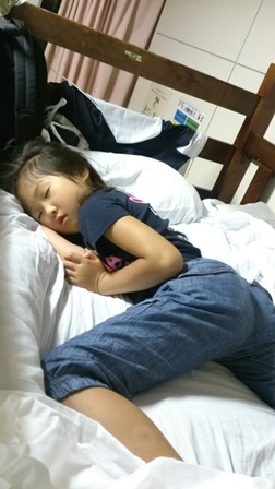 寝不足いなのに、いっぱい遊んで、いっぱい食べたから