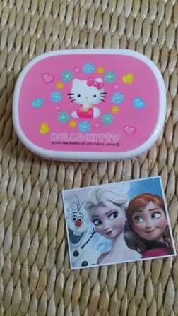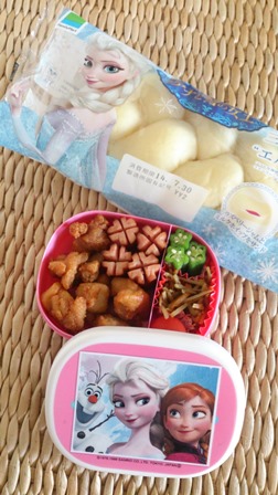 今ブームの『アナと雪の女王』の切り抜きをお弁当箱に貼るだけ(笑)