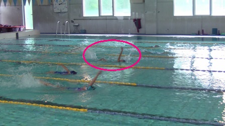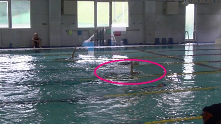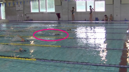 手でゆっくり水をかいて進むこと!