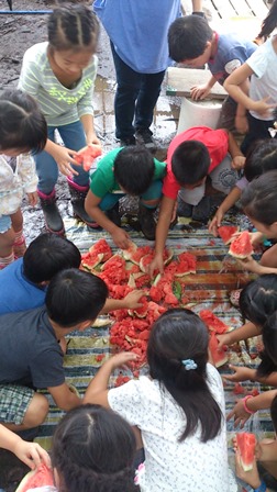 後ろの男子たちは大きいパラシュートをみんなでジャンケン中(笑)