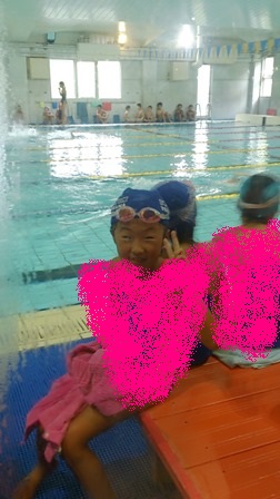 1本泳いでお友達とニコニコ♡