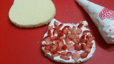 イチゴをハートの形に切って飾りつけ♡