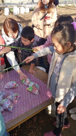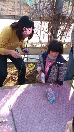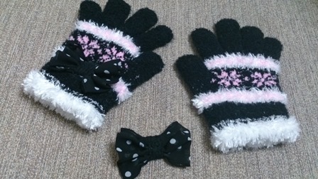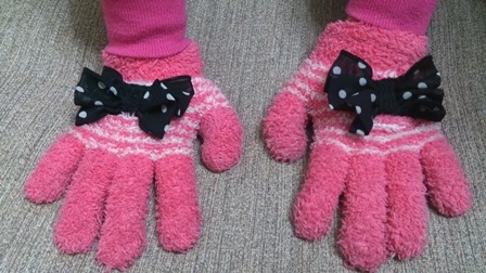 100均の手袋にリボンをつけてあげのが年中さんの1月♡