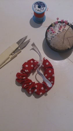 赤組だから赤い色のシュシュにしてあげたくて