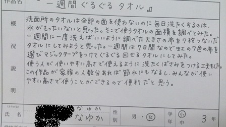 夏休みの創意工夫が学校の代表に選ばれて