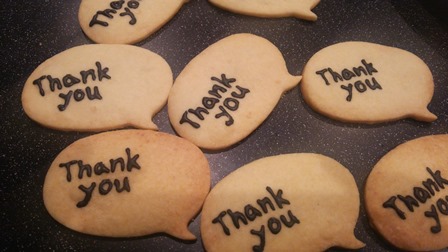 そのあいだに私はクッキーにチョコペン『Thank you』を書いてみました♡