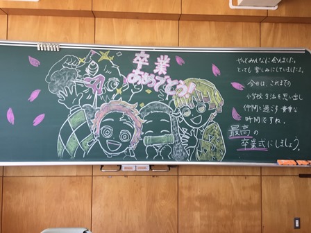 担任の先生が子どもたちが好きそうなキャラクターを描いてくれたんだって♡