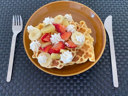 バナナ・イチゴ・キウイ・生クリーム・メイプルシロップで超高カロリー(笑)