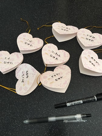 各教科の先生・スタッフさんにメッセージカードを書いて・・・