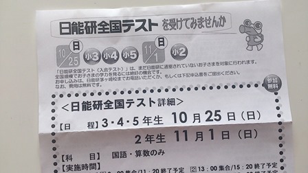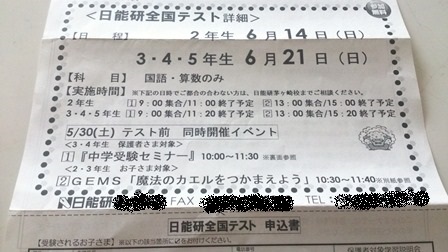 テスト中は保護者は別室で日能についてとか中学受験についてとか