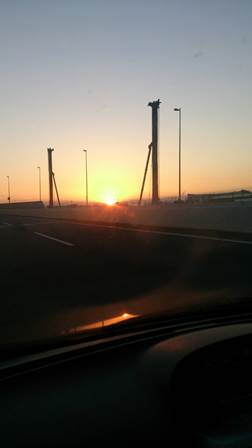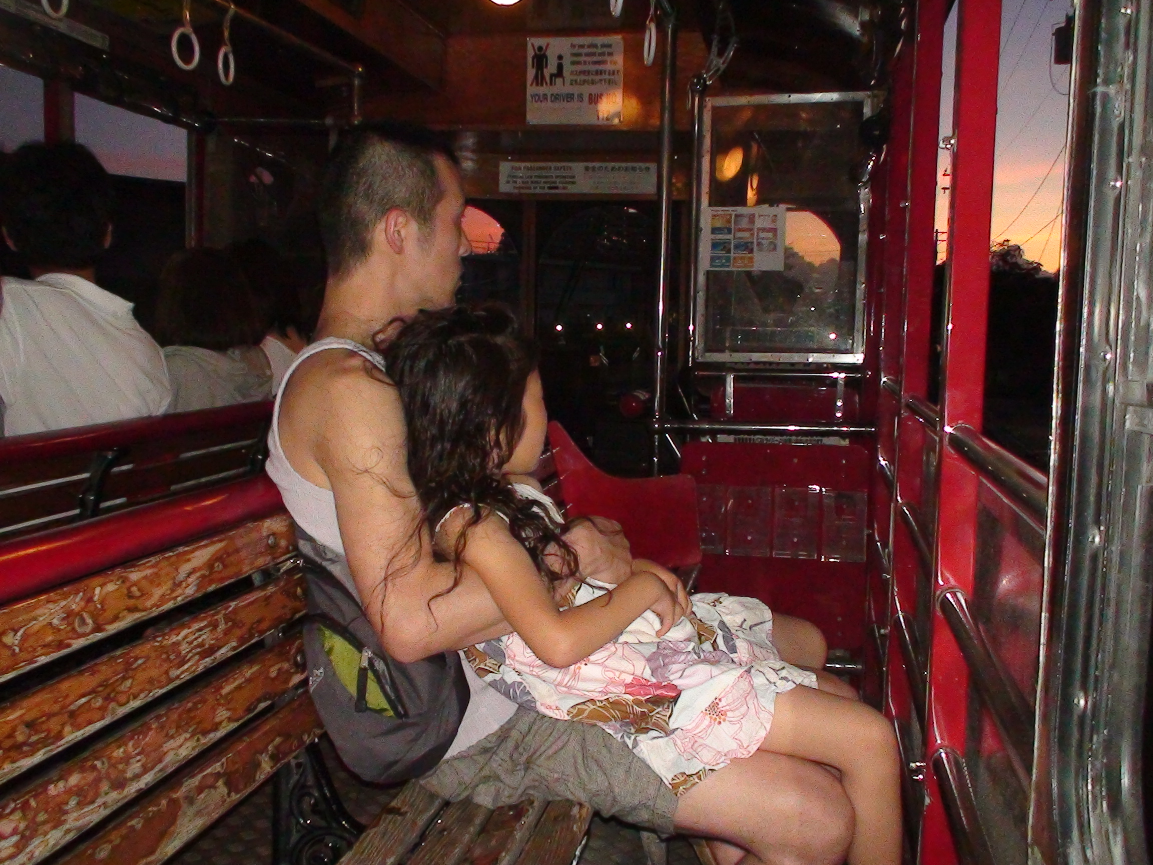 夕焼けを見ながらバスでショッピングモールへ・・・