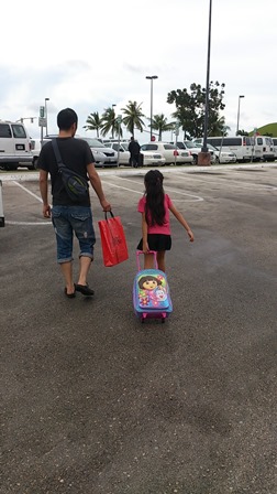 パパがターンテーブルからスーツケースをピックアップしてる間に