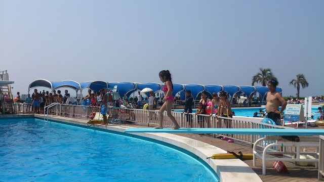 お腹がすくまでプールと海で遊び