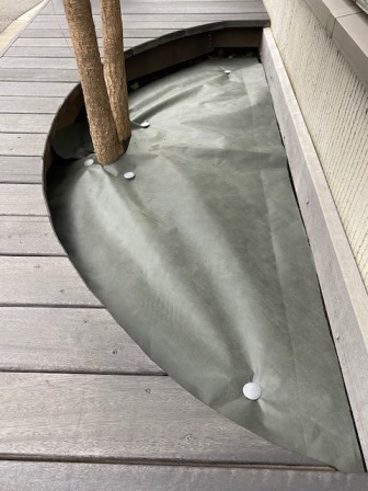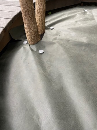 幹の根元は雑草が生えやすいからシートをしっかり固定して・・・