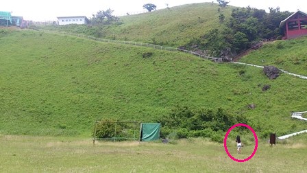 アーチェリー場は大室山の頂上から階段で下ったところなんだけど・・・