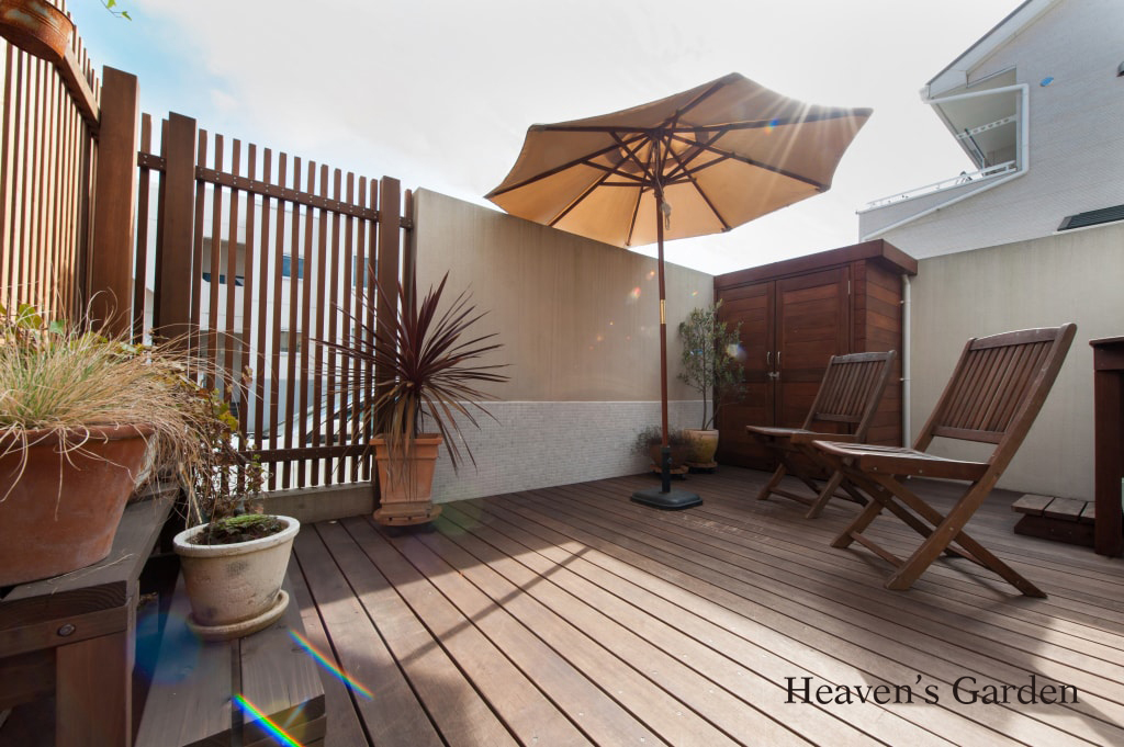 藤沢市の閑静な住宅街に建つS様邸。こちらはエクステリア・ガーデンの改修工事でした。元々ウッドデッキはあったものの朽ちてしまい、新しいものに交換したいというご依頼でした。ただそれだけでは勿体ないので、おしゃれで過ごしやすく、室内から見ても優雅な空間にしました。室内インテリアのセンスも抜群でしたので、その風景に馴染むガーデンデッキを計画しました。今回は塗装仕上げにし、色調を合わせ、違和感のないデザインにしました。また物置も作り付けで作成。おしゃれなウッドデッキに有っても違和感のない収納スペースになりました。全体的にドライでリゾートな空間のウッドデッキガーデンになりました。