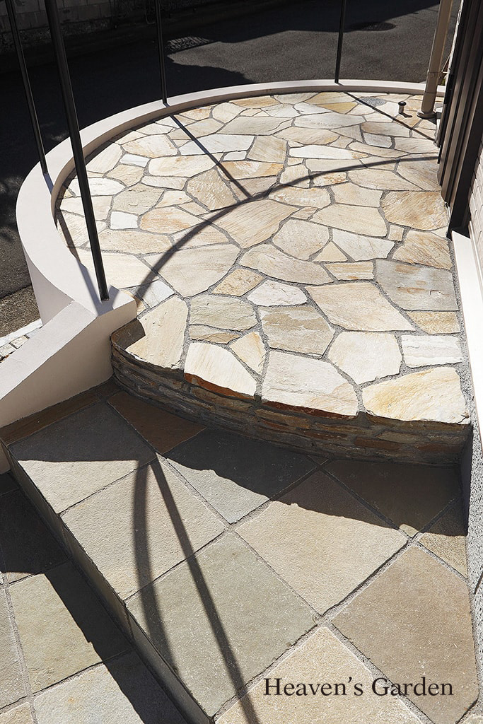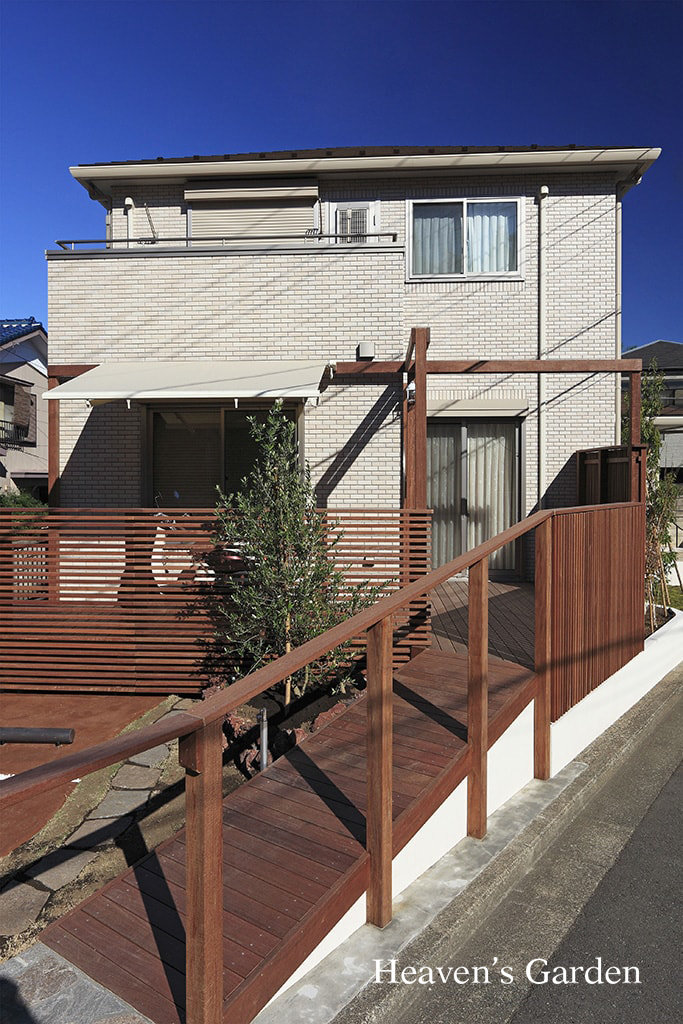 exterior受賞作品 No.49 横浜市泉区 I邸 2016年メイクランド 審査員特別賞雑誌『湘南スタイル』掲載『Gather』カタログ掲載 住宅メーカー:パナソニックホームズ スタイル:ナチュラルモダン 状態:新築 カテゴリー:オープンエクステリア 参考予算:300万以上 円形の浮き床ポーチが場に動きを与え、重厚なエントランスに Previous Next Before 「うちの庭、こんなに広かったっけ?」びっくりして語ってくれたのはIさん。元あった古家を解体して新しく作ったのですが、「家の大きさは殆ど変わらないのに随分庭、そして敷地が広く感じられるようになりました。 エントランス設計のポイントは何といっても玄関ポーチの設計からやっている点です。この家の一番の見どころとも言えます。上部が大きくオーバーハングした人工地盤の作りになっており、浮き上がったような立体的な構造になっています。またステージのようなポーチを囲むように特注のロートアイアン手すりがフレーミング。空間を引き締めながらモダン+エレガントな空間に仕上げています。 西側はウッドデッキとカースペースにしました。ウッドデッキは出入りしやすく、またバイクの駐輪スペースとしても使えるよう、ウッドのスロープを作りました。駐輪スペースには屋根の代わりにオーニングを設置。このオーニングは西日を避ける効果もあります。カースペースは塗装仕上げ。シンプルながら汚れづらく、他の素材と馴染みやすいものにしました。 BACK PAGE CONTACT
