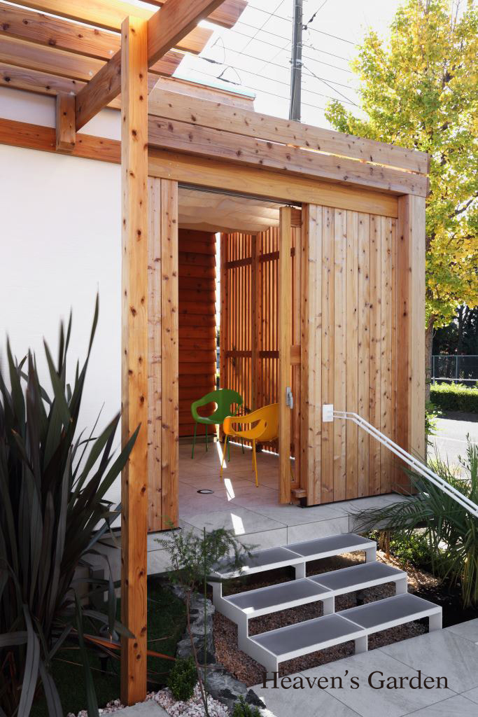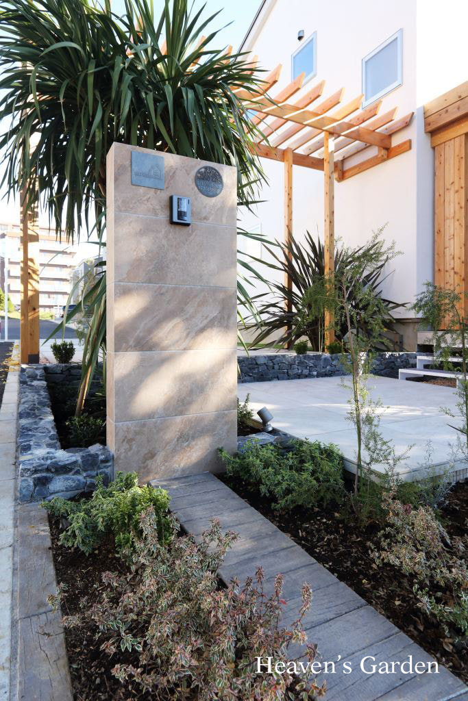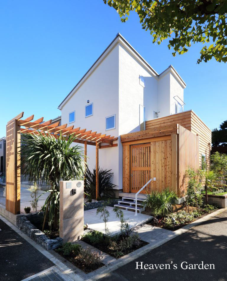exterior受賞作品 No.50 藤沢市 モデルルーム 2017年東洋工業フラワー&グリーン賞雑誌『湘南スタイル』掲載『東洋工業』カタログ掲載 住宅メーカー:かしこホーム スタイル:湘南リゾート 状態:新築 カテゴリー:セミクローズエクステリア 参考予算:300万以上 浮遊感のあるエントランスと植栽のコラボレーション Previous Next Before この計画はかしこホーム様のモデルハウスの計画として作らせて頂きました。エクステリアのコンセプトとしては「MHと一体感のあるエクステリア」でした。モデルハウスは1階に薪ストーブを設置、リビングの一部が土間になっていてバイクが置いてあるなど、家と外の境界線が良い意味で曖昧な空間になっています。この計画の最大のポイントはドローイングポーチという玄関ポーチの空間を10m2程度まで大きくし、屋根を設置。併せて日よけも設置することにより、玄関ポーチの空間の快適度を大きく向上させました。それによりこの空間は接客可能スペースになり、不用意に誰でも中にいれなくても良い空間になります。併せて自転車や子供の遊び道具の収納場所としても使うことができます。鍵付きの扉も設置できるので、セキュリティも向上します。外観的にも大きな存在感出せるよう、上部のタイル部分を張り出し仕様にしています。これにより、空間に動きが生まれ、シンプルながら単調な空間になりません。そこに続く階段は鉄骨フレーム+ポリカ板の透過性のある階段になっています。外周部はコンクリートブロック+枕木、アメリカンメッシュフェンスを基調にシンプルながら存在感、重厚感のあるデザインとなりました。カーポート部分にはフレーミングの意味を含め、アーチゲート的なパーゴラを設置しました。 夜になるとこの空間は別の表情を見せます。ドローイングポーチの床に埋め込まれたライトは天井のシェードに反射、ポーチそのものが照明器具として光を放ちます。階段下に埋め込まれたライトが光ると半透明の階段から光が漏れ、ガラスの階段のような輝きを見せます。外周部の植栽も光を纏い、その葉のひとつづつが輝きだします。 全体として、湘南らしさとこの場所に暮らすその意味を考えさせる、そんな計画になりました。 BACK PAGE CONTACT