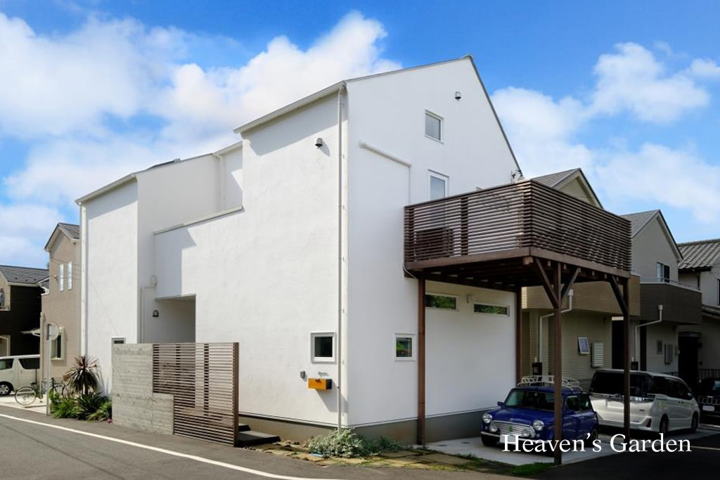 横浜の閑静な住宅街の中にあるS様邸。和風テイストで車2台分のオープン外構、そして太陽光発電設備の載せたいというご希望でした。