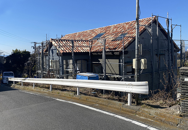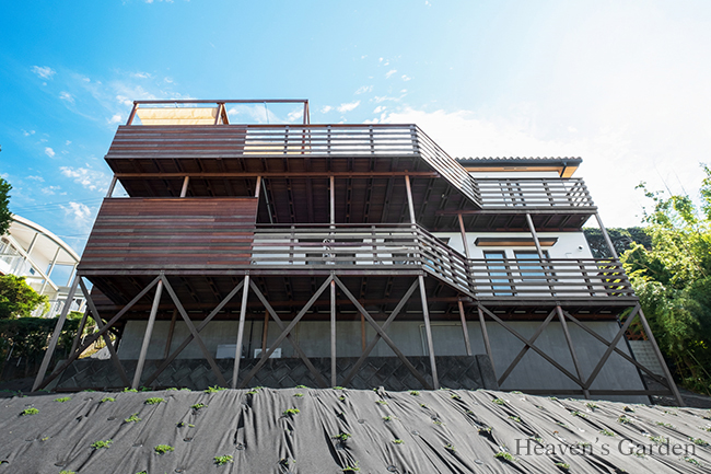 『まずは敷地と家を見ていただけますか?』というお問い合わせから始まったY様とのお打合せ。実際、現地に行ってみると山の斜面に建築中のY様のお住まいがありました。敷地内高低差は10m以上あり、エントランスは2階から入る形で計画していただいているものの、どこを歩いて玄関までアクセスするかは全く決まっていない状況。そして2階リビングからは湘南の海の水平線を眺められる絶好のロケーションでした。