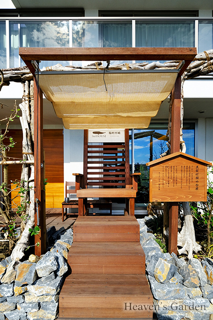 また西棟のアーチは稲村ケ崎の流木を使用。海岸に上がった流木を丁寧に引き上げ、加工しアーチにしました。