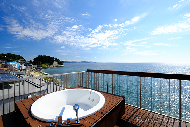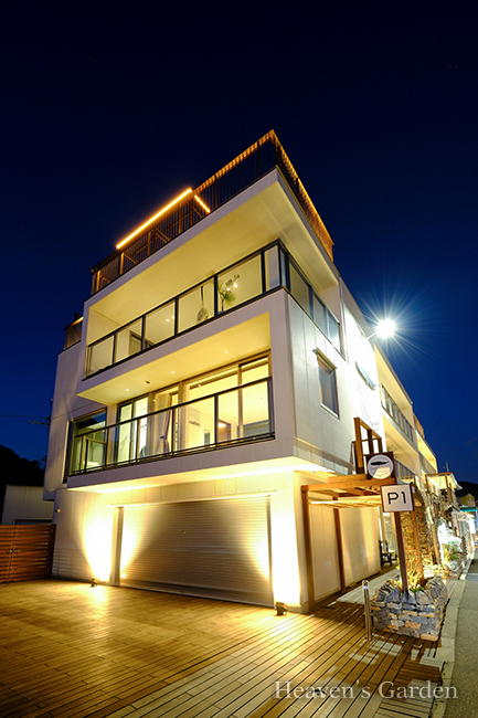 稲村ケ崎に佇む高級民泊施設のエクステリア・屋上ガーデン