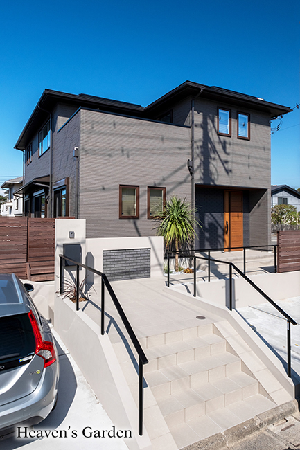 鎌倉の海風の心地よい場所に立つH様邸。最初にハウスメーカー様からご提案いただいたエクステリアプランが何となく腑に落ちず、金額も高いというのもあり、ご自身で探していただいたことがきっかけで弊社にお越しいただきました。